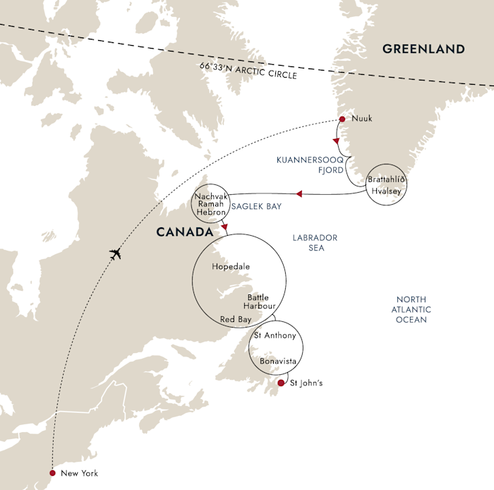 Join us as we set out from Nuuk, then sail down the west coast of Greenland and traverse the Labrador Sea, exploring Newfoundland and sub-Arctic Canada.
