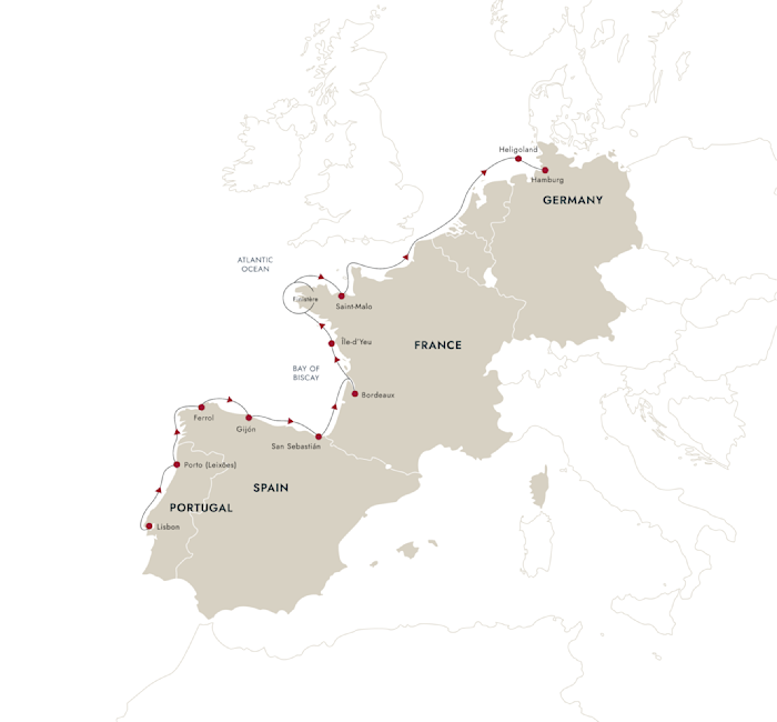 Join this expedition cruise from Lisbon to Hamburg, taking in spectacular scenery, UNESCO sites and breathtaking nature along Europe's Atlantic coast.