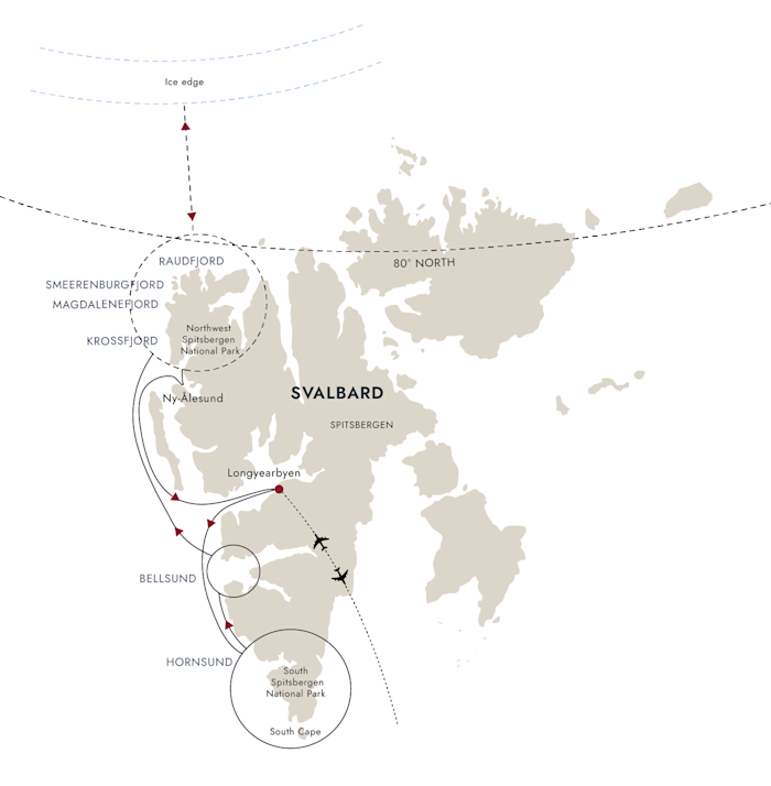 After a flight from Oslo, your adventure begins with an overnight stay in the world’s northernmost town, Longyearbyen.